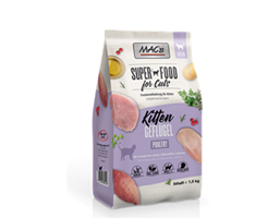 MAC’s Kitten Geflügel bietet Ihrer Katze alles, was sie für ein gesundes Wachstum benötigt. Die getreidefreie Vollnahrung wurde entwickelt, um das Wohlbefinden Ihres Lieblings zu steigern. Kitten bietet ein ausgewogenes Aminosäureprofil. Norwegisches Lachsöl ist reich an Omega-Fettsäuren und sorgt für eine gesunde Haut und ein glänzendes Fell. Cranberries sind natürliche Säurebildner und können bakteriellen Blaseninfektionen vorbeugen. Durch schonende Zubereitung und die Zugabe von Vitaminen und Mineralstoffen wird eine naturnahe Ernährung Ihrer Katze erreicht.